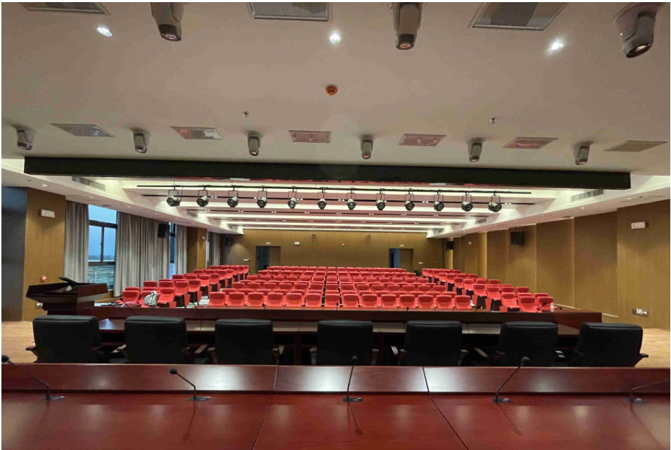 陜西渭南會議中心經常舉辦各類大型會議,會議頻繁召開,對會議設備提出了更高的要求。HUAIN華音根據大型階梯報告廳和小型會議室的使用需求,選擇全數字嵌入式會議系統進行搭建使用。全數字嵌入式會議單元HY-6120系列根據桌面尺寸量身定制,全鋁合金面板內嵌觸控亞克力面板,具備防水防塵功能;支持數量限制、先進先出、后進先出、主席允許、自由討論五種會議模式;拾音有效距離可達50-60cm,信號穩定,發言無噪音電流影響。