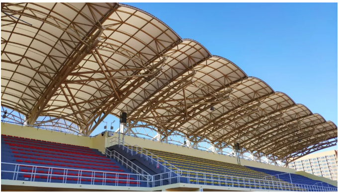 由于該體育場(chǎng)為改造項(xiàng)目,建設(shè)方無法提供音箱在頂棚安裝的條件,因此只能訂做安裝結(jié)構(gòu)進(jìn)行安裝。