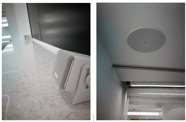 為了融入展示中心的設計觀感,選擇了德國EV的超緊湊型揚聲器i4,而且特別從德國工廠定制了白色版本,搭配DR的高保真天花揚聲器,在展示中心內(nèi)做到“只聞其聲不見音箱”的觀演效果,而且擴聲系統(tǒng)的音質(zhì)保證世界級水準,讓來到展示廳的賓客產(chǎn)生愉悅的觀感,進一步增強客戶體驗。