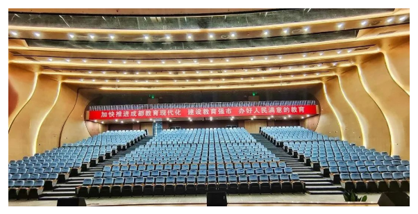 學??傉嫉孛娣e約150畝,總建筑面積約14.5萬平方米。普通教室、功能教室、報告廳(禮堂)、體育館、健身房等設施一應俱全。成都英才學校將傳承成都七中百年辦學歷史積淀,繼承成都七中的優(yōu)秀辦學傳統(tǒng)、教育思想、管理制度,以成都七中的品牌影響力,高起點、高定位,把“成都英才學校”建設成為成都市、四川省乃至全國知名的高品質新樣態(tài)現(xiàn)代學校。 藝術中心多功能演藝廳 藝術中心演藝廳可容納1200位師生,具備承載各類文藝演出、會議、學術報告等多功能使用需求。校方對場內聽音區(qū)的聲壓級均勻度有很高的要求,要求為藝術中心演藝廳提供一套現(xiàn)代化高標準的擴聲系統(tǒng),具備聲壓級大,有較高語言清晰度,保證音色的一致性。