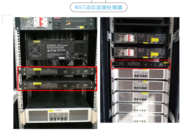 為增強出聲效果,NST動態音頻處理器:ID48S 也加入了此次“布陣”中,ID48S具有4個平衡的模擬輸入和8個輸出的全矩陣混合能力,每個輸入通道擁有一個可調拐點的高級壓縮器以及一個高 通濾波器,8段參量均衡、28段圖示均衡器、3段動態均衡 (DEQ)和長達1.3秒可調的延時。強大功能和靈活性更是音響系統的得力助手。